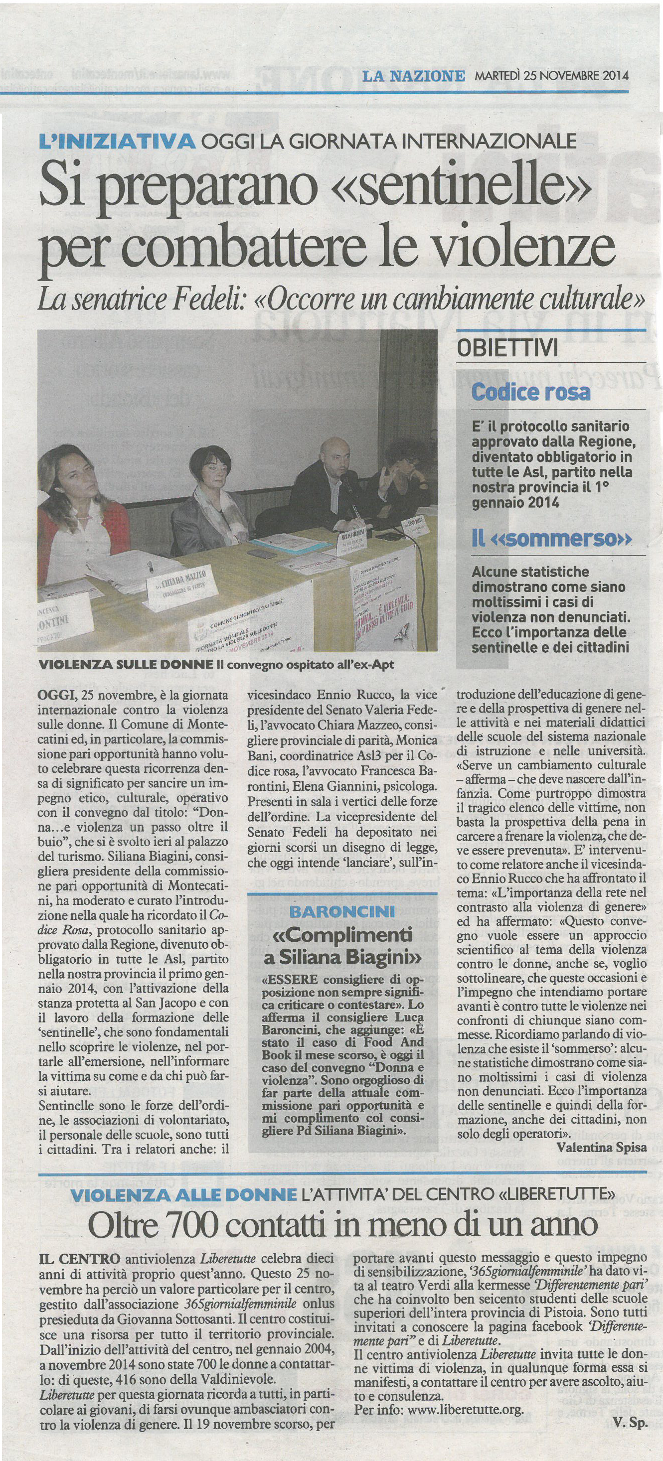 La senatrice Fedeli: "Occorre un cambiamento culturale" OGGI, 25 novembre, è la giornata internazionale contro la violenza sulle donne. Il Comune di Montecatini ed, in particolare, la commissione pari opportunità hanno voluto celebrare questa ricorrenza densa di significato per sancire un